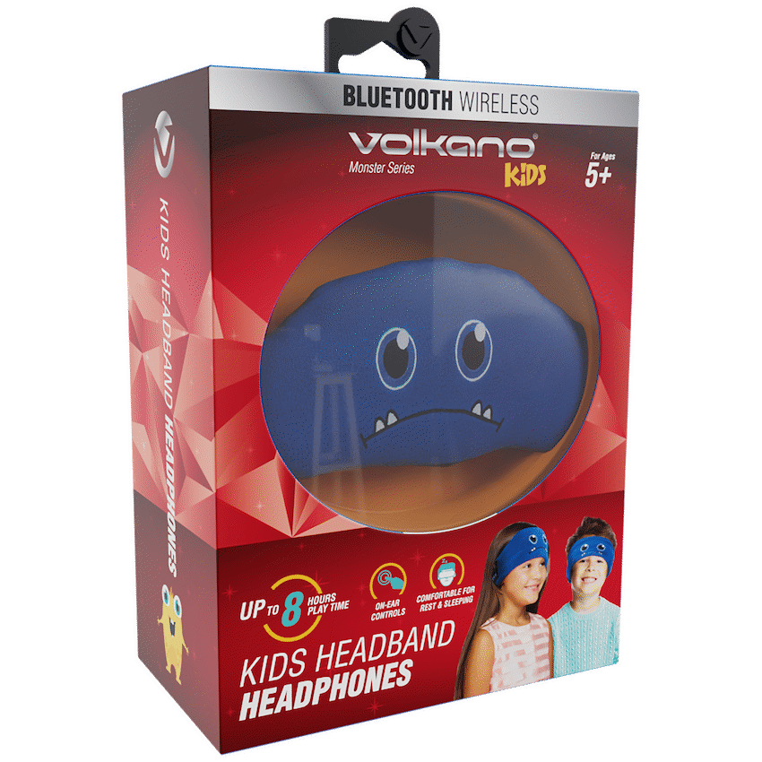 These Volkano Kids Monster Series Bluetooth Headband Headphones provide comfortable, wireless audio for children. They offer 6 to 8 hours of playback via Bluetooth 5.0, and the soft headband is machine washable.