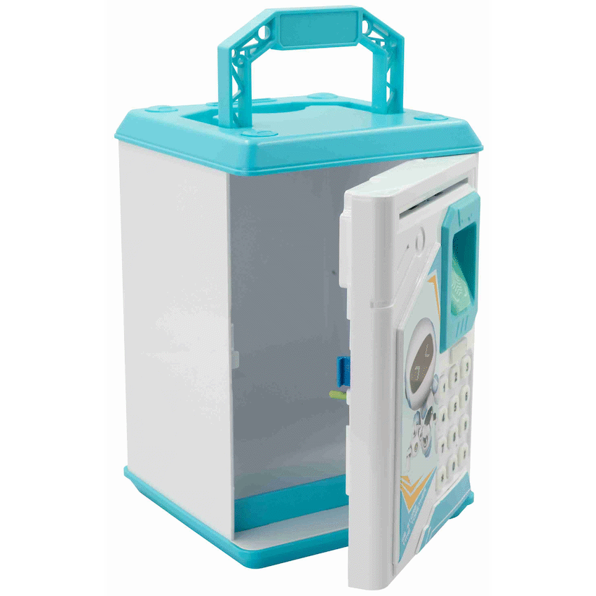 Help children learn to save money with the Volkano Kids Robo Vault. This bright blue vault provides a secure place for coins and notes. It is part of the Volkano Kids Robo Vault series, made for young savers.