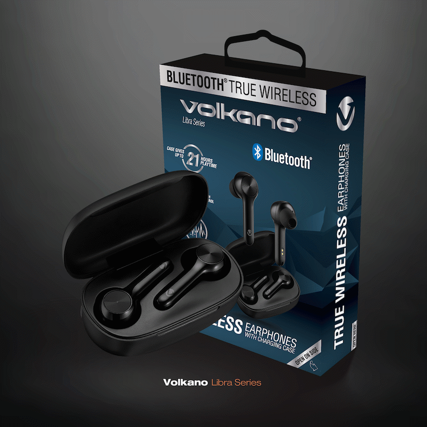 Volkano Libra Series TWS Earphones + Charging Case – Black