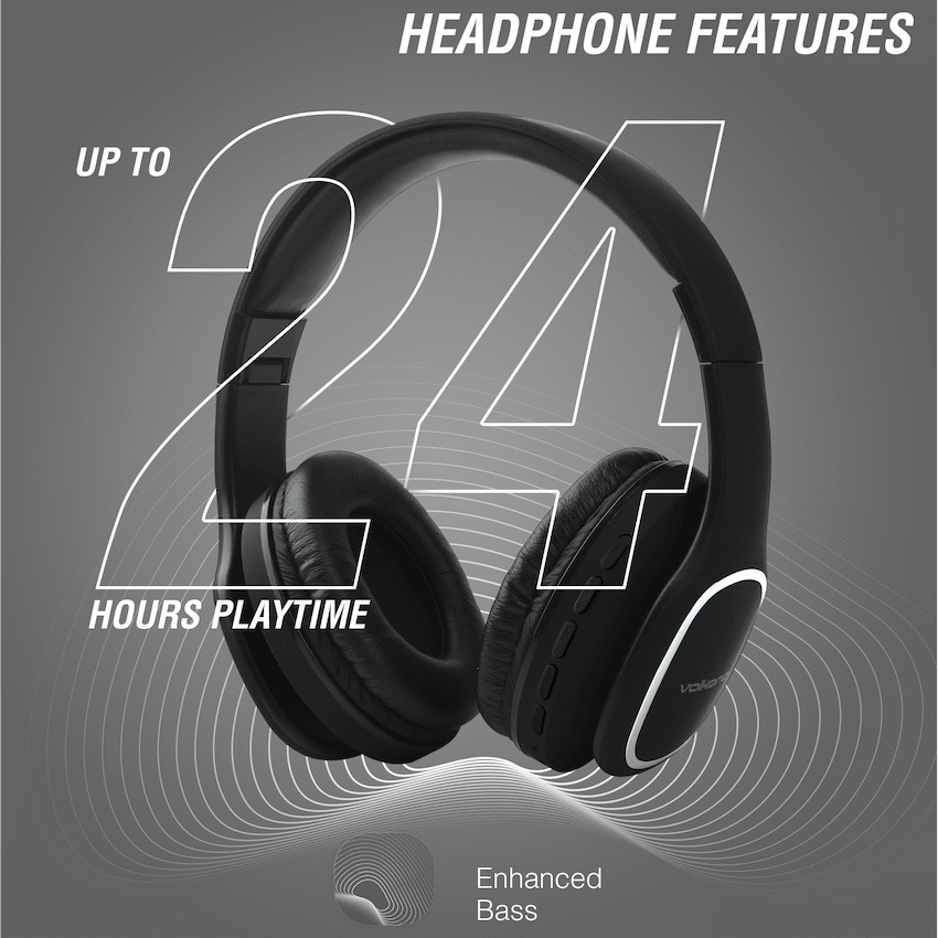 Get reliable audio and extended use with Volkano Phonic Series Bluetooth Full Size Headphones. They feature up to 75 hours of playtime and multipoint connectivity for two devices. Enjoy clear sound from Volkano.
