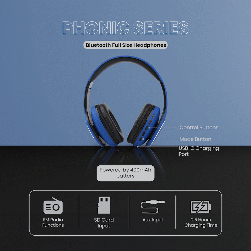 Volkano Phonic Series Bluetooth Full Size Headphones