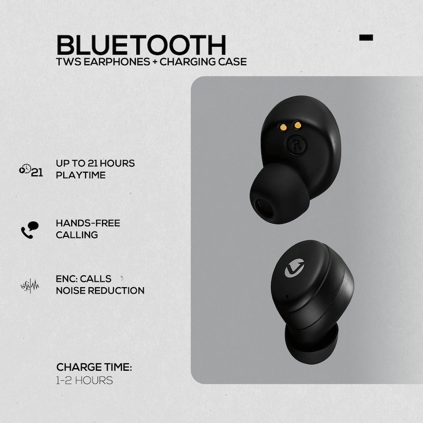 Volkano Sagittarius Series TWS Earphones + Charging Case – Black
