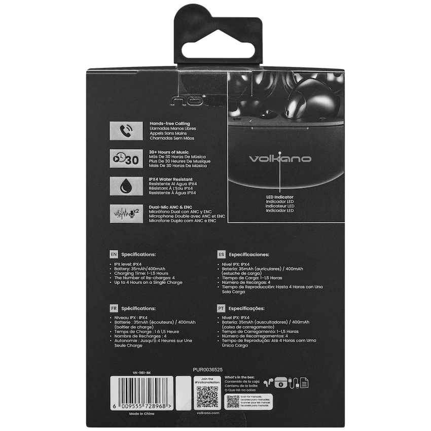 - These Volkano Soundshield TWS Earphones feature Active Noise Cancelling (ANC) and Environmental Noise Cancelling (ENC) for clear sound and calls.
