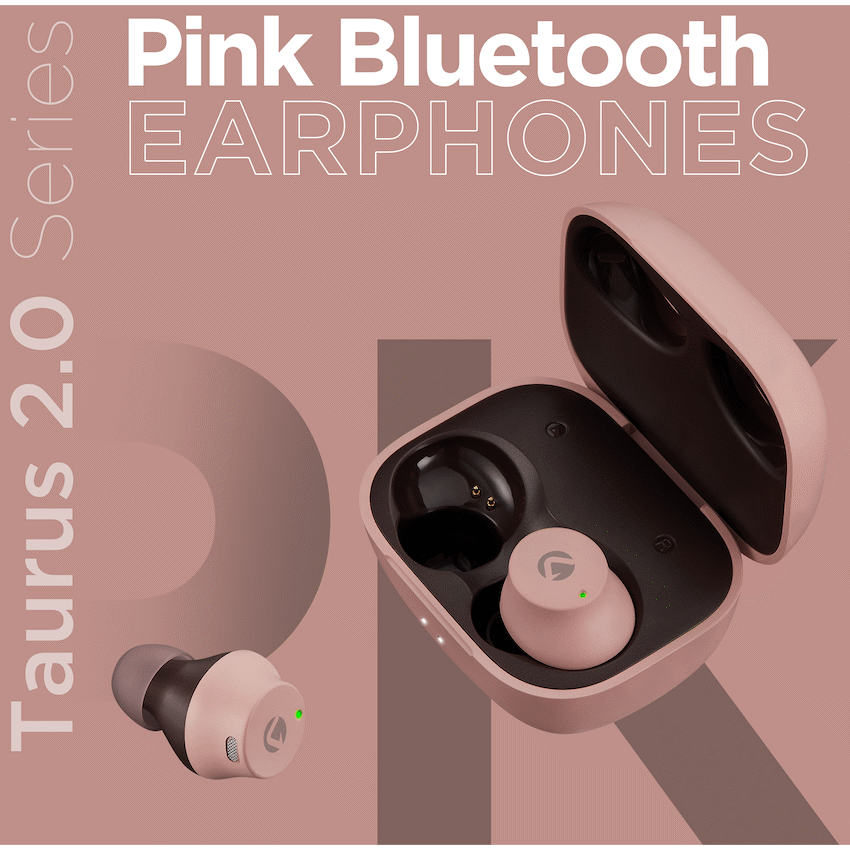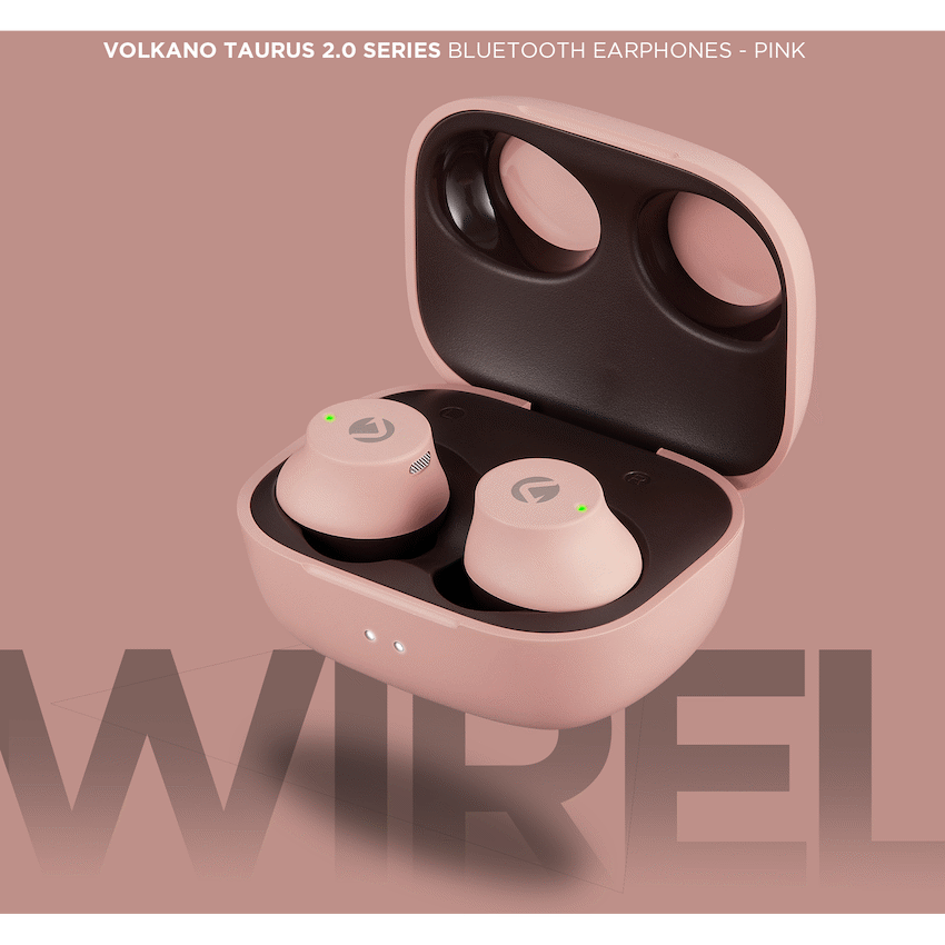 Volkano Taurus Series 2.0 True Wireless Earphones with Charging Case – Pink