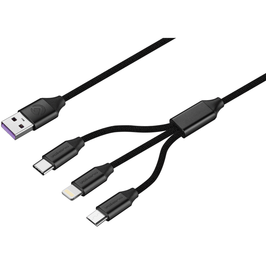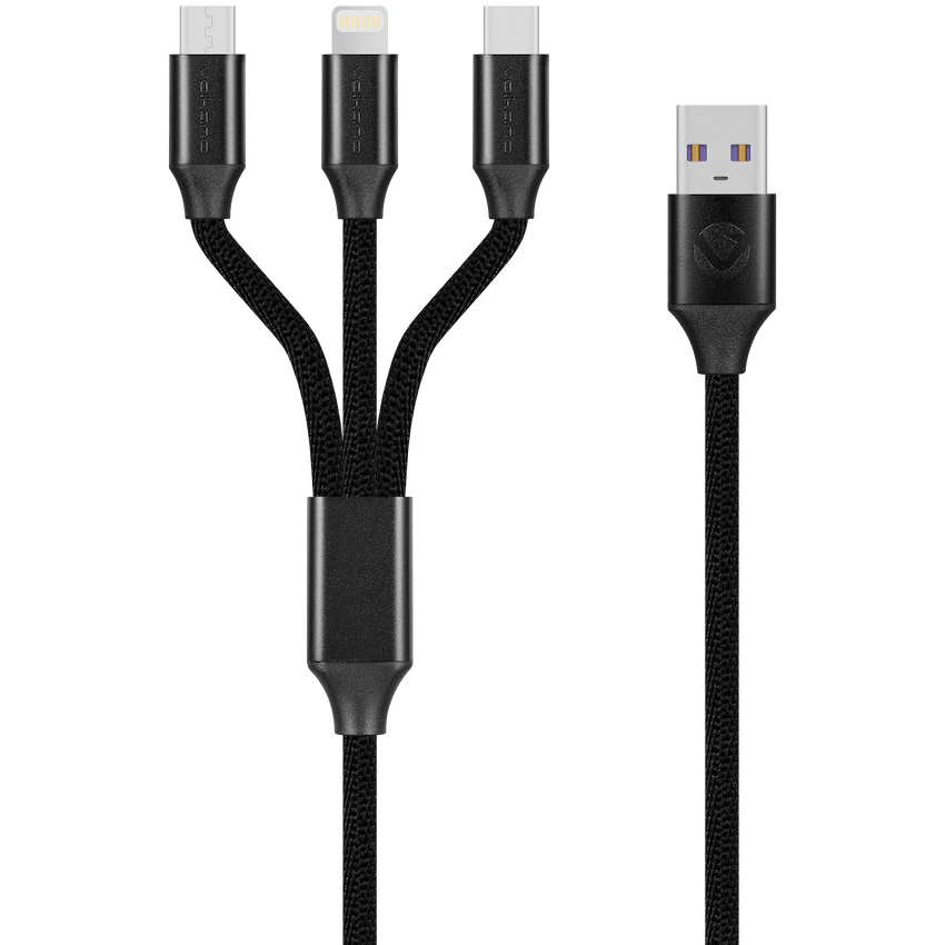 Volkano Weave Series Fabric Braided 3-in-1 (Type-C/Lightning/Micro) Cable 1m – Black