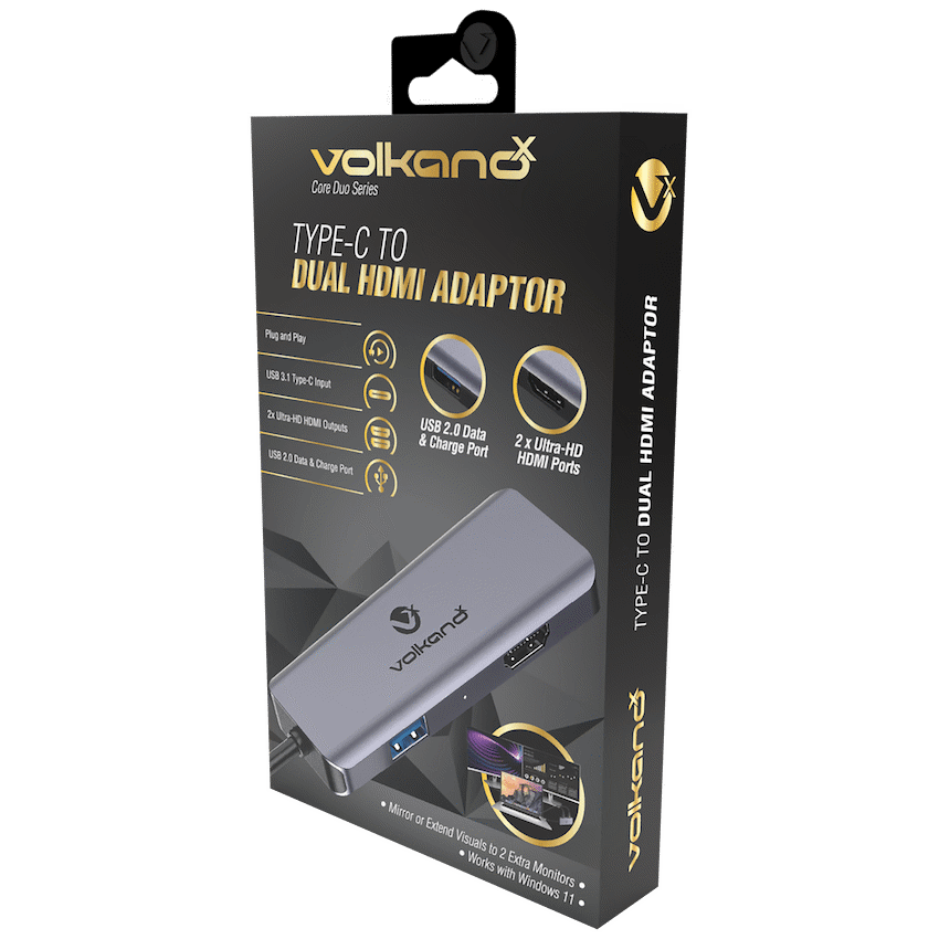 For general promotional efforts, the VolkanoX Core Duo HDMI Type-C to Dual HDMI Adaptor provides a practical way to expand display connectivity for modern devices.