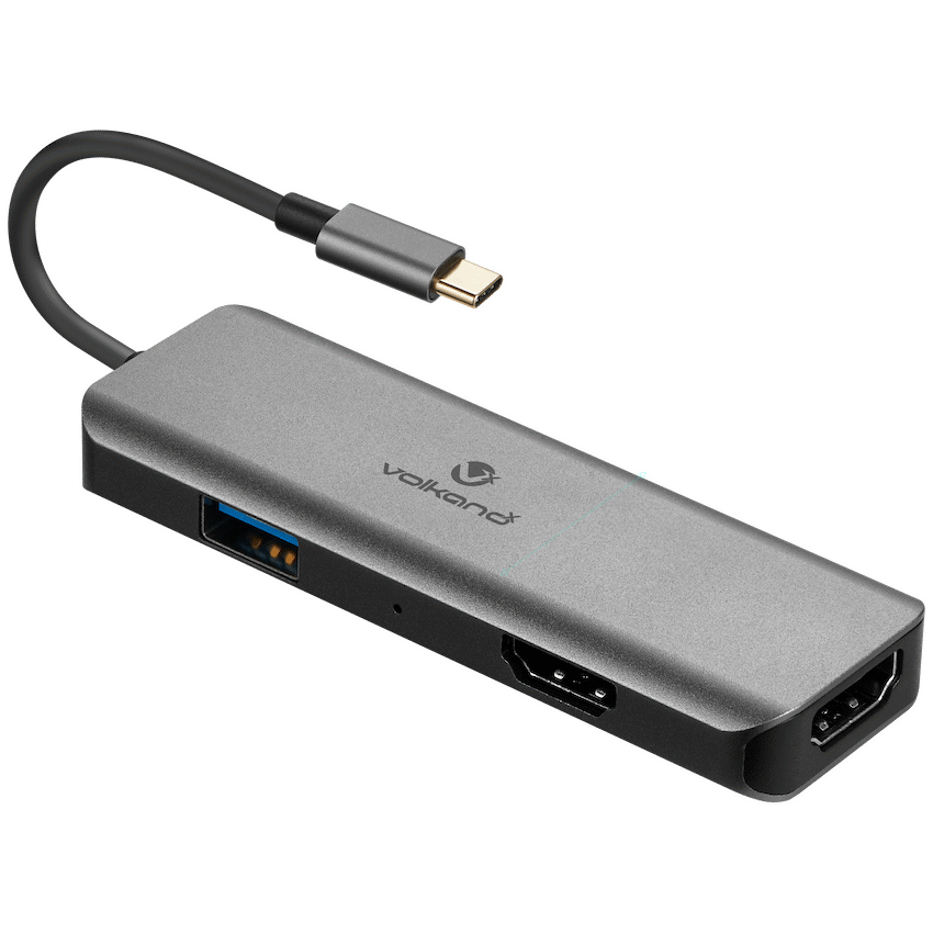 Expand your display options with the VolkanoX Core Duo adaptor. It converts a single USB-C port to dual HDMI outputs for extended or mirrored high-resolution screens. An additional USB port helps with data or charging. A useful VolkanoX accessory.