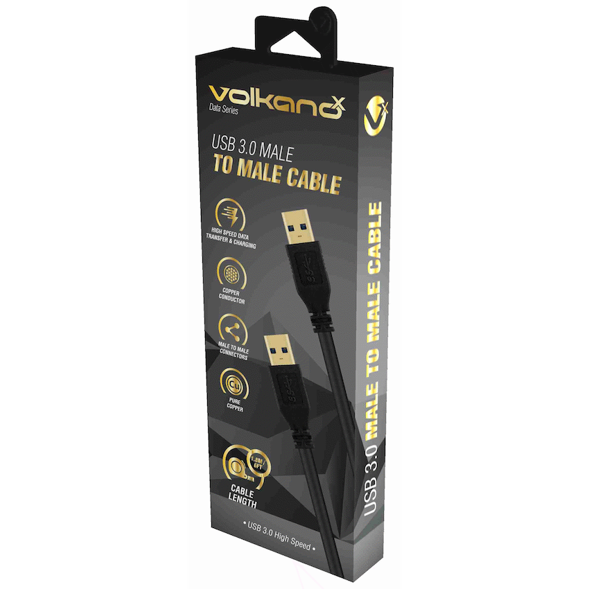 This VolkanoX Data Series cable provides fast data transfer between USB 3.0 devices. It supports speeds up to 5 Gbps and features 1.8 metres of reach with USB-A male-to-male connectors. A dependable VolkanoX accessory for modern connections.