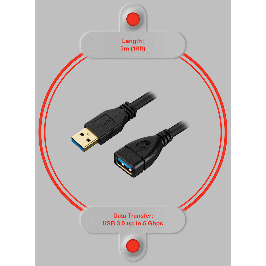 • This USB 3.0 extension cable provides 3 metres of extra reach for various devices.