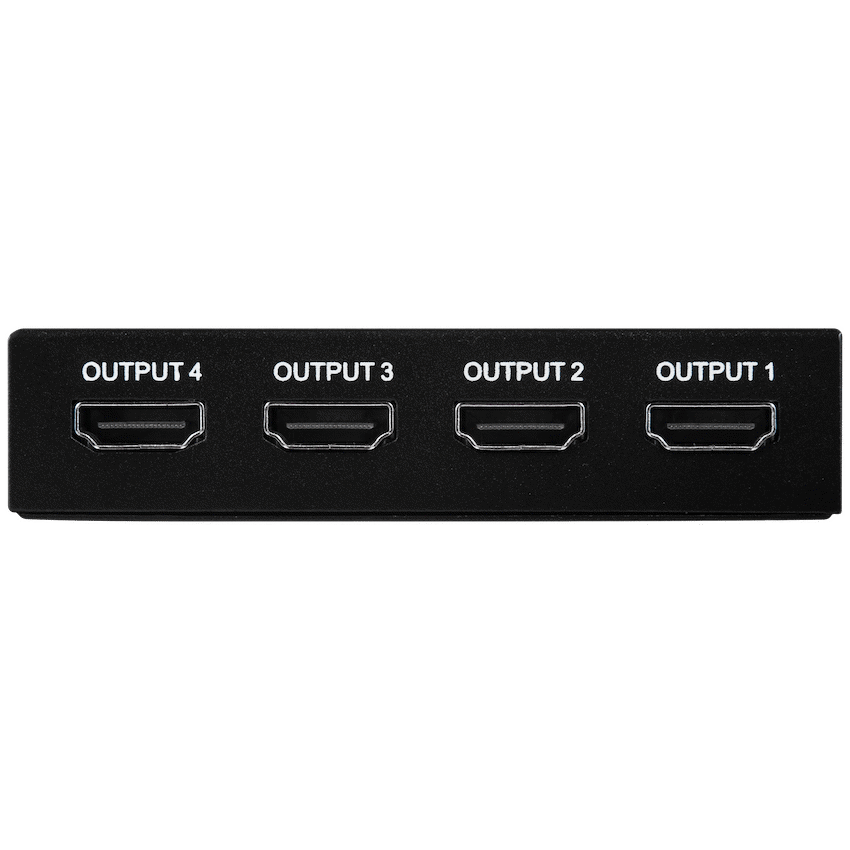 - Distributes one HDMI input to four identical HDMI outputs, suitable for multi-screen setups in retail or presentations.