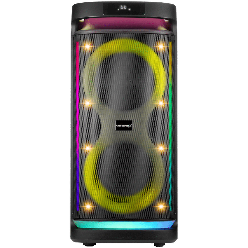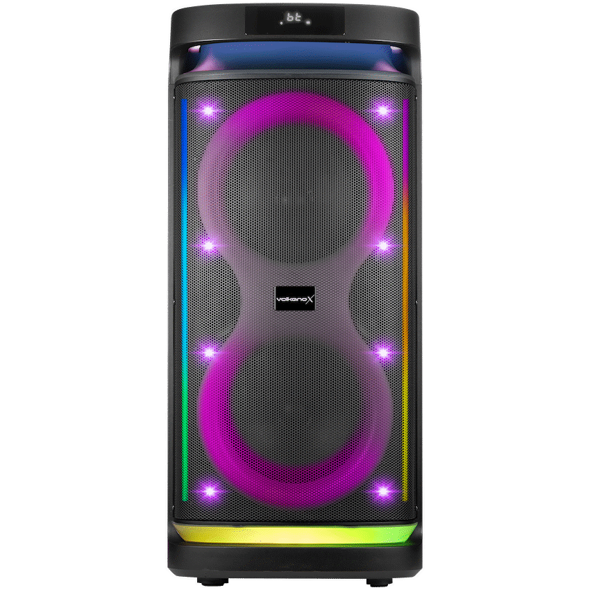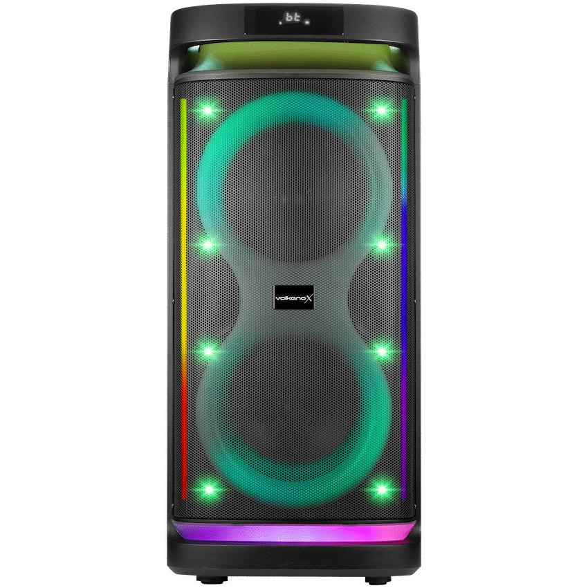 This VolkanoX Paramount Series 8″ Bluetooth Party Speaker provides powerful audio for any event. It delivers 80W RMS sound and connects via Bluetooth, USB, or FM radio. Its wheels and handle make it easy to move, making it suitable for any VolkanoX user.