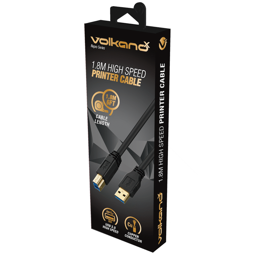 Print documents quickly and reliably with this VolkanoX Repro Series printer cable. Its 1.8-metre length allows flexible placement, and USB 3.0 High Speed connectivity provides quick data transfer. A copper conductor makes for dependable performance with your printing.