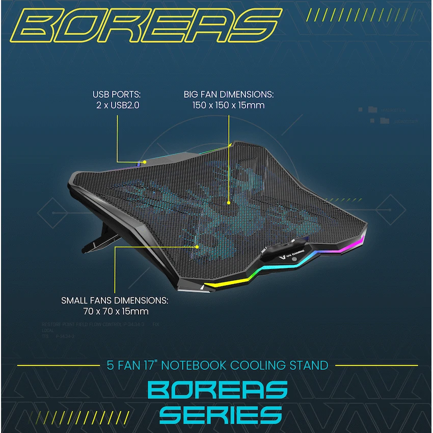 VX Gaming Boreas Series 5-Fan 17″ Notebook Cooling Stand