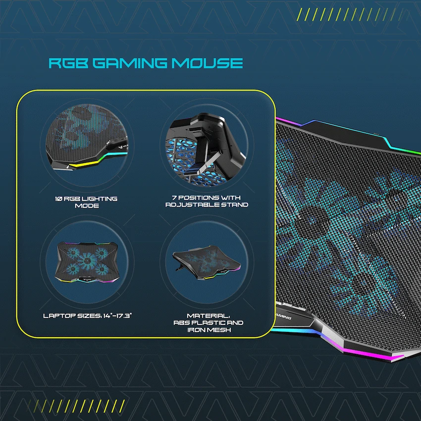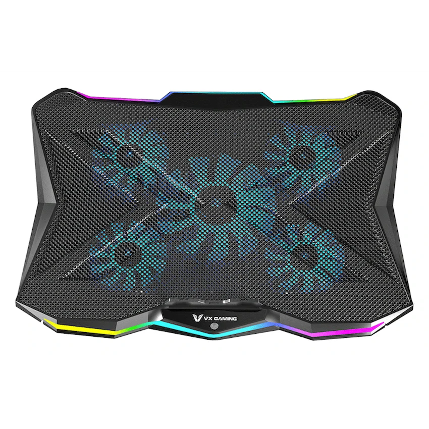 Maintain laptop performance with the VX Gaming Boreas Cooling Stand. Five quiet fans provide constant airflow for 14-17.3 inch notebooks. It also features 10-mode RGB lighting and seven-position height adjustment, making it a practical VX Gaming accessory.