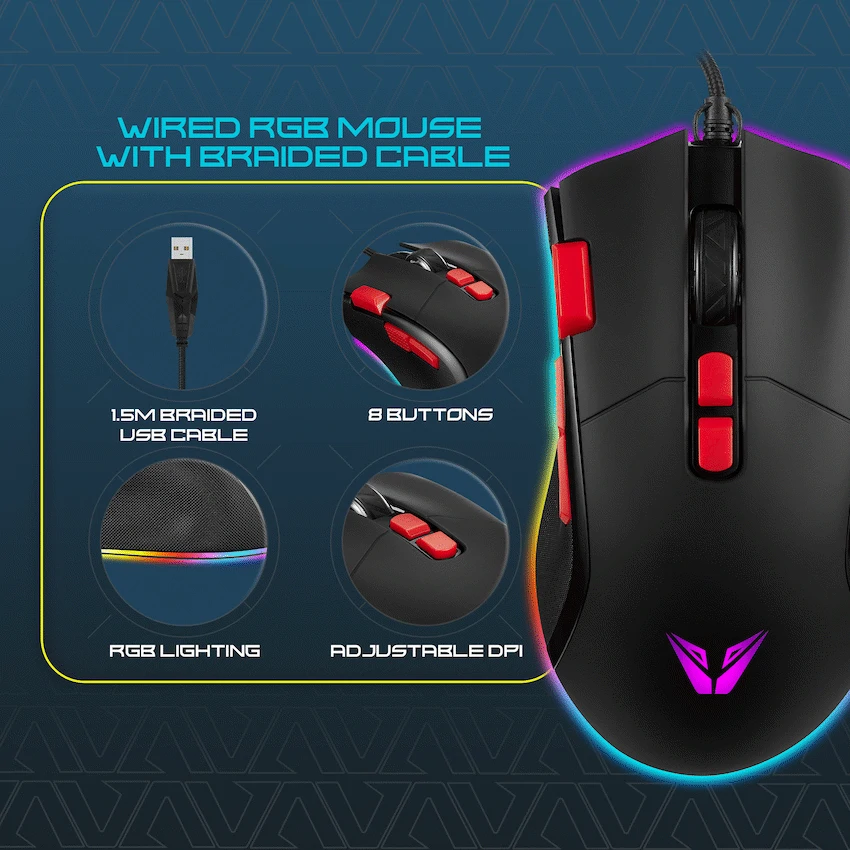VX Gaming Morpheus Series Wired RGB Mouse with Braided Cable