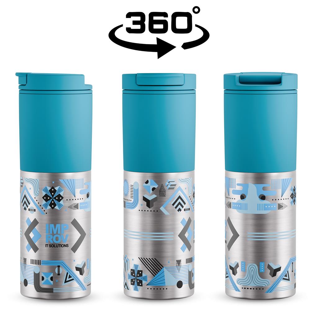 - Includes a Kooshty Typhoon Double Wall Tumbler (450ml), made from PP and stainless steel, 7.5 (w) x 21.5 (h) cm, with a flip-top lid.
