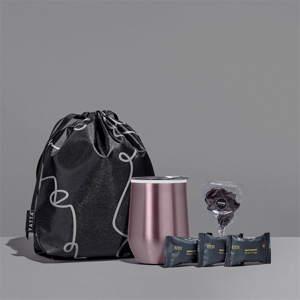 The Yatta Sassy Surprises Hamper makes a pleasant promotional gift for clients or staff. It contains a Serendipio 350ml double-wall tumbler, a Yatta African Sucker, and three 1701 Nougat Mini’s. All items come in a Yatta drawstring bag, reflecting your brand.