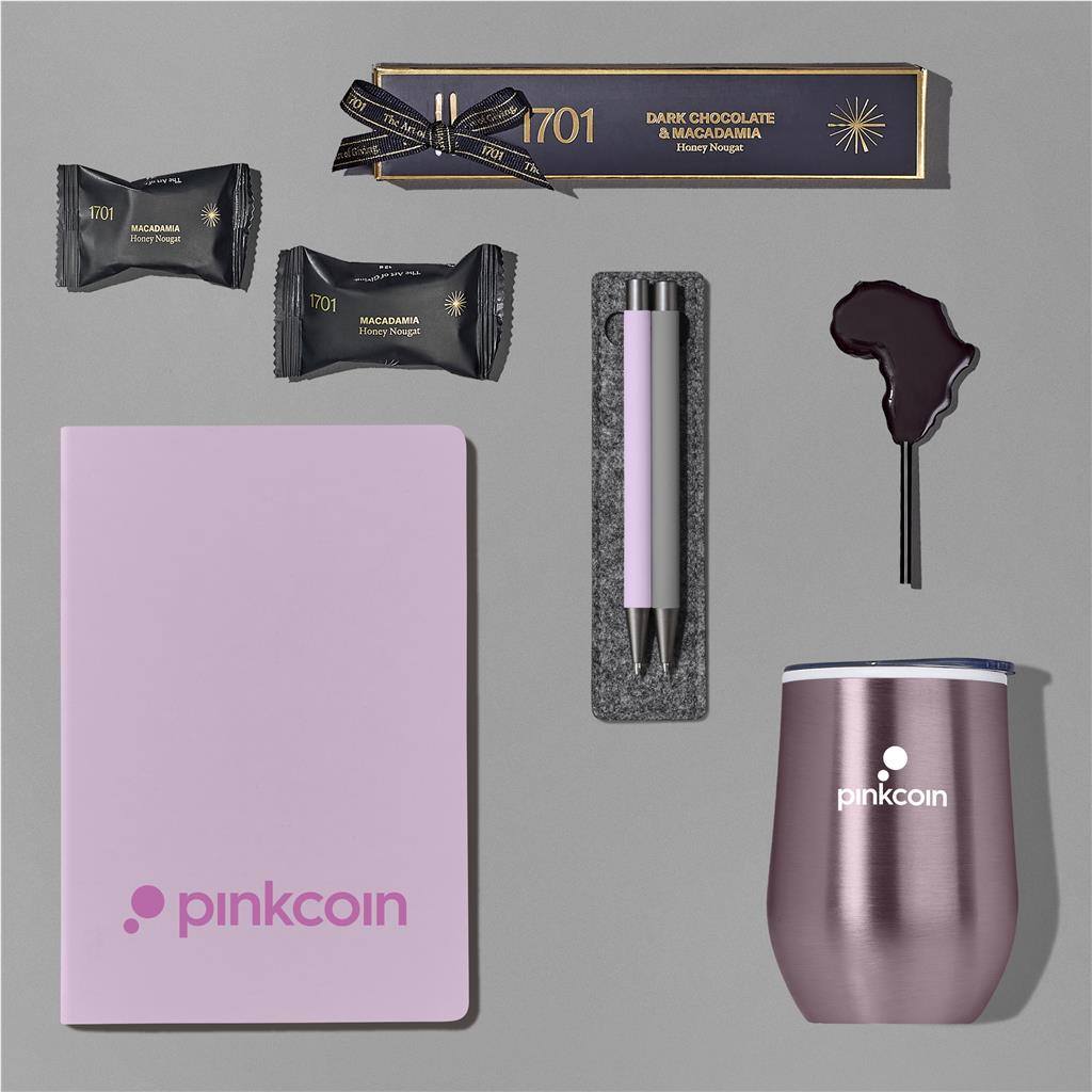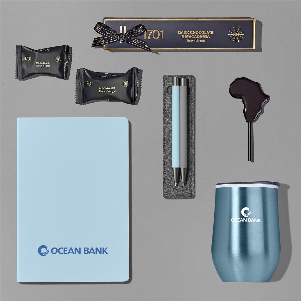 The Yatta Vogue Vibes Hamper is ideal for corporate gifting and promotional campaigns. It contains a Serendipio double-wall tumbler, an A5 notebook, a pen and pencil set, plus Yatta nougat sweets. This collection delivers a stylish Yatta brand impression.